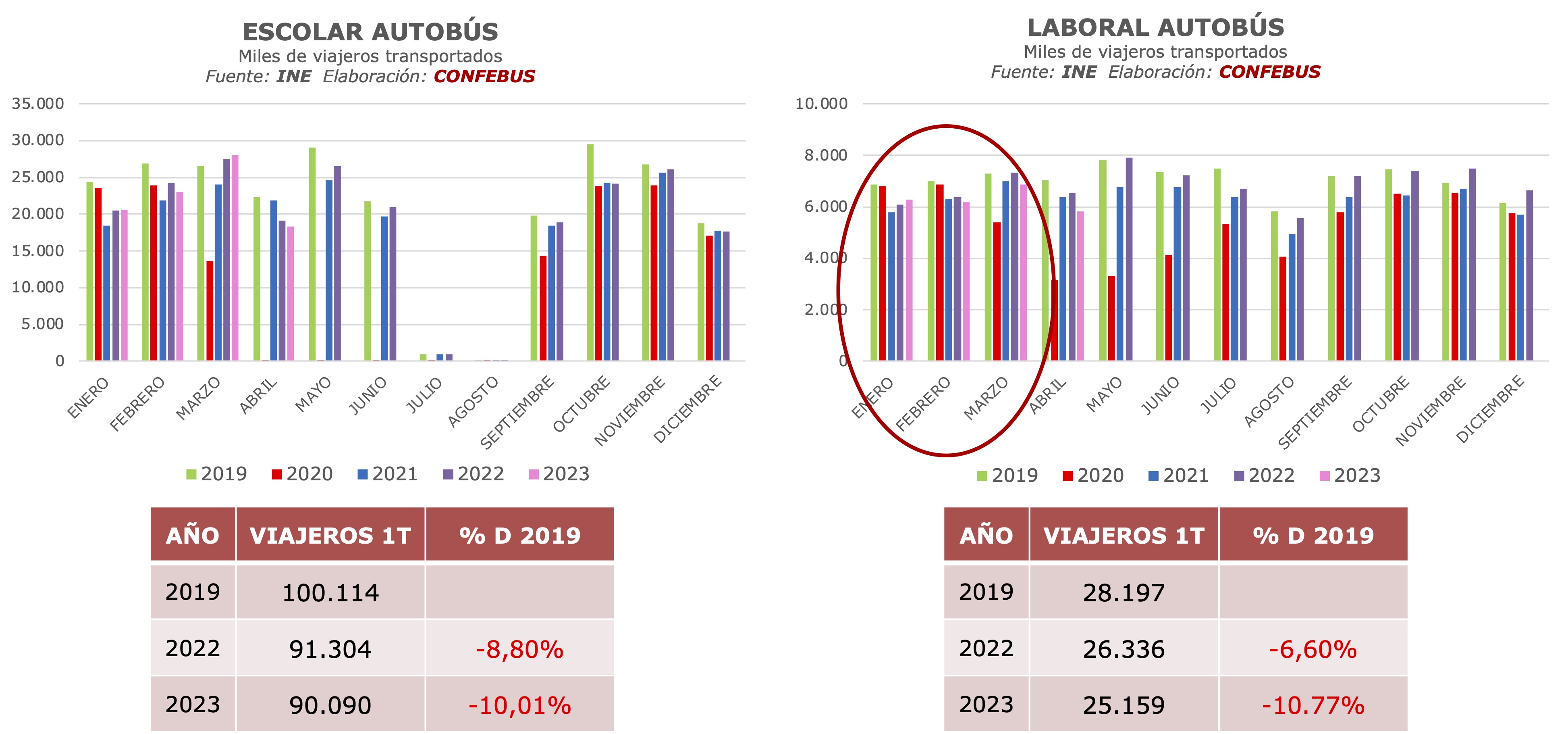 Y, por último, el transporte escolar y el transporte laboral siguen un -10% y un -10,8%, respectivamente, por debajo de la demanda de 2019.