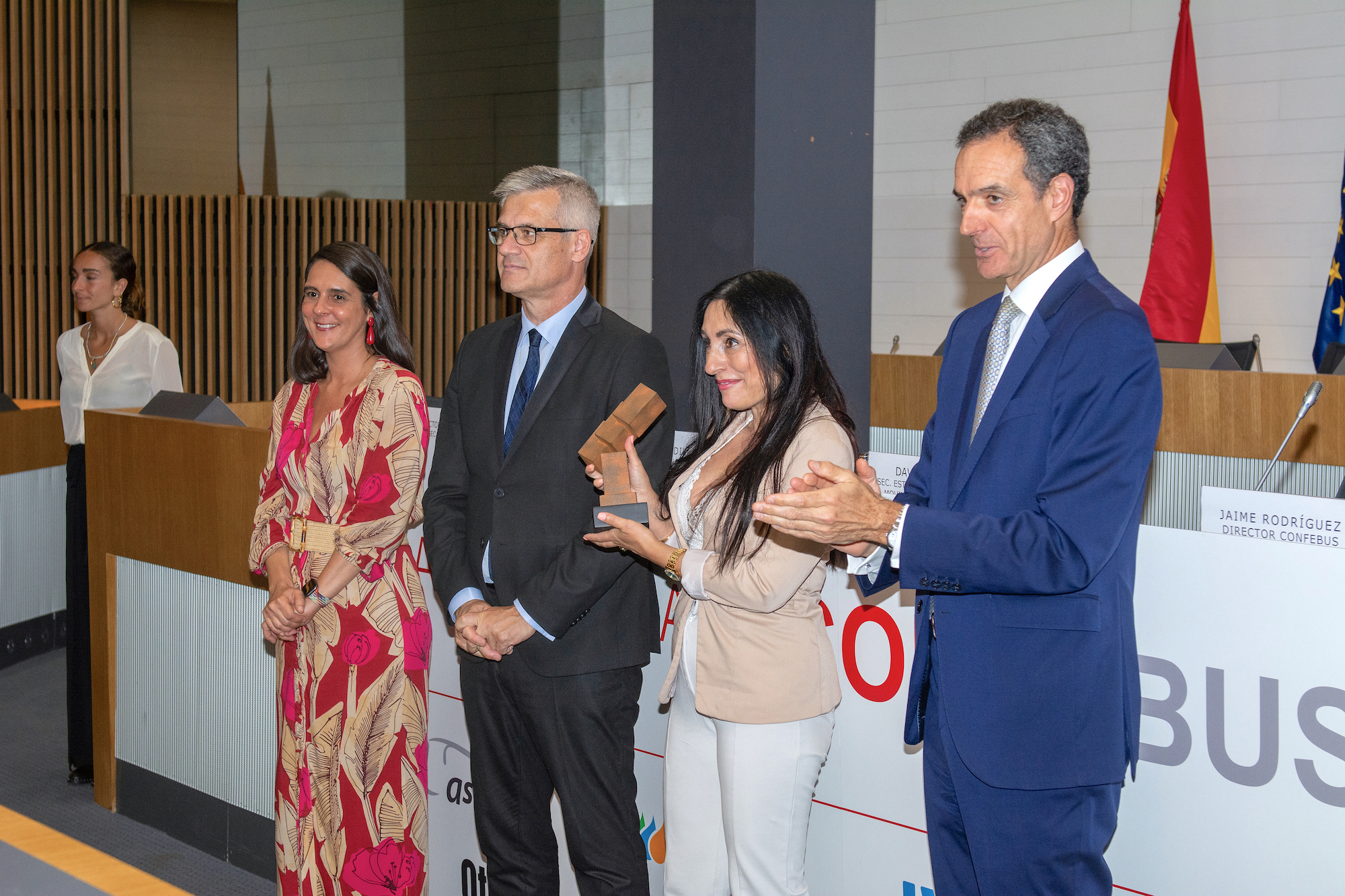 Entregaron los premios David Lucas, secretario de Estado de Transportes, Movilidad y Agenda Urbana del Mitma, junto al presidente de CONFEBUS, Rafael Barbadillo, y la secretaria general de CONFEBUS, Mayi Mora-Figueroa.