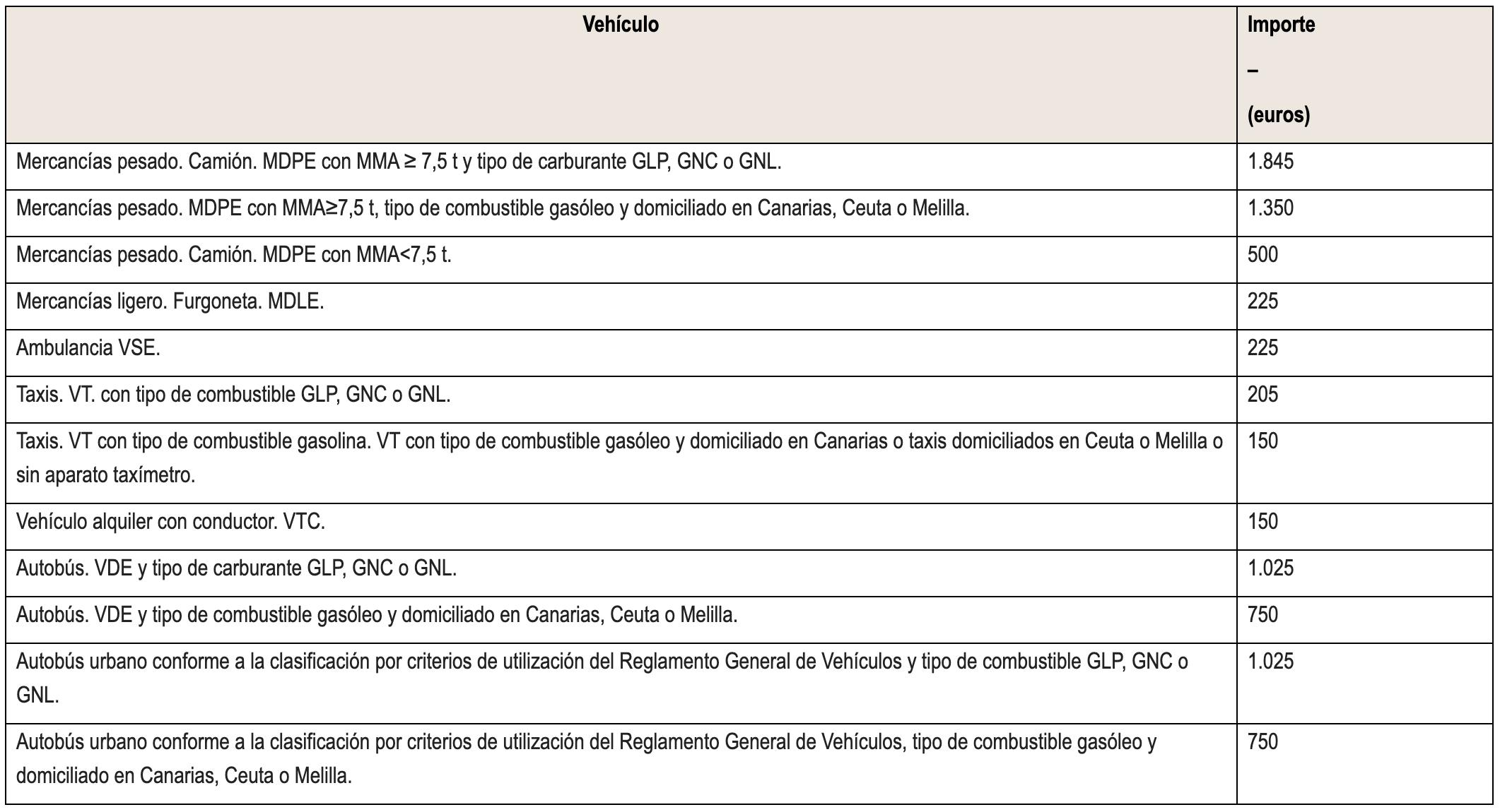 La bonificación se calcula estimando el consumo, por tipo de vehículo, en un periodo de seis meses: del 1 de julio de 2023 al 31 de diciembre de 2023. Así, teniendo en cuenta las diferentes cuantías fijadas para cada trimestre, las ayudas por vehículo para todo el periodo son las siguientes: