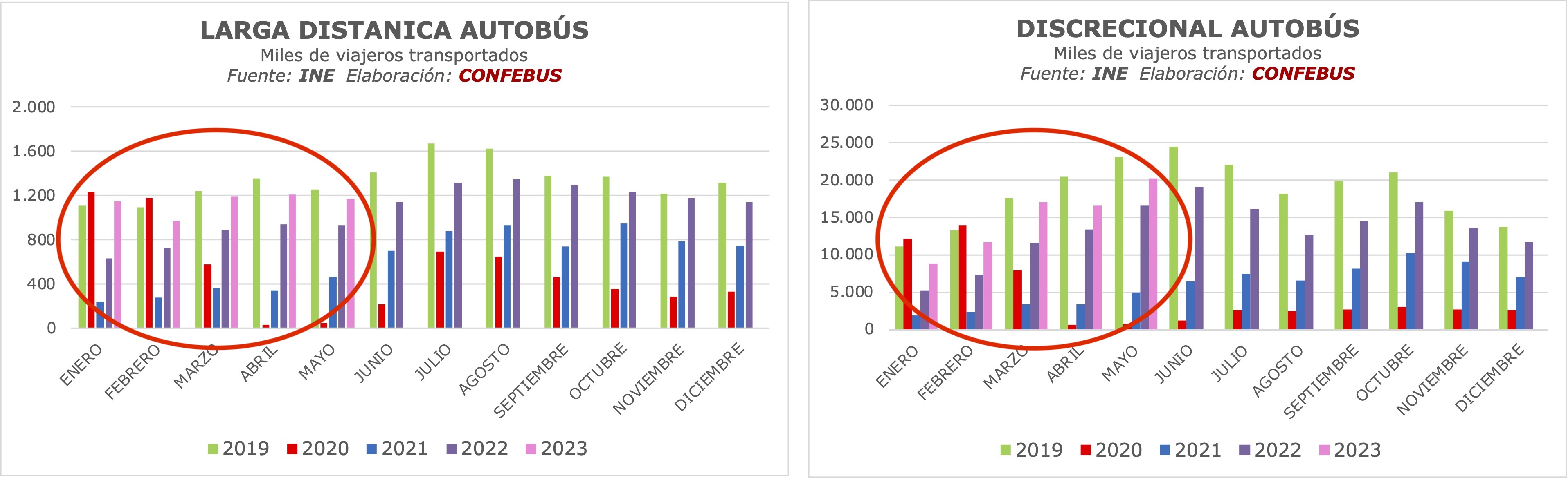 También la demanda de viajeros del transporte discrecional se encuentra un -13% por debajo de las cifras del primer cuatrimestre de 2019.