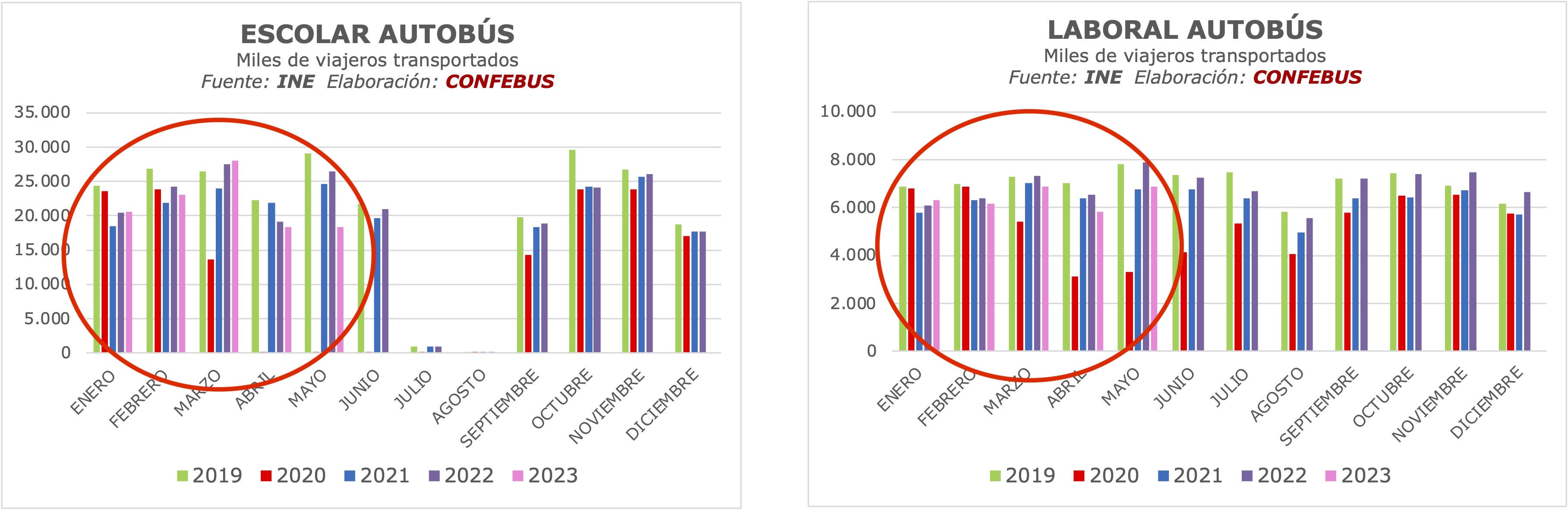 Y, por último, el transporte escolar y el transporte laboral siguen un -16% y un -11%, respectivamente, por debajo de la demanda de 2019.