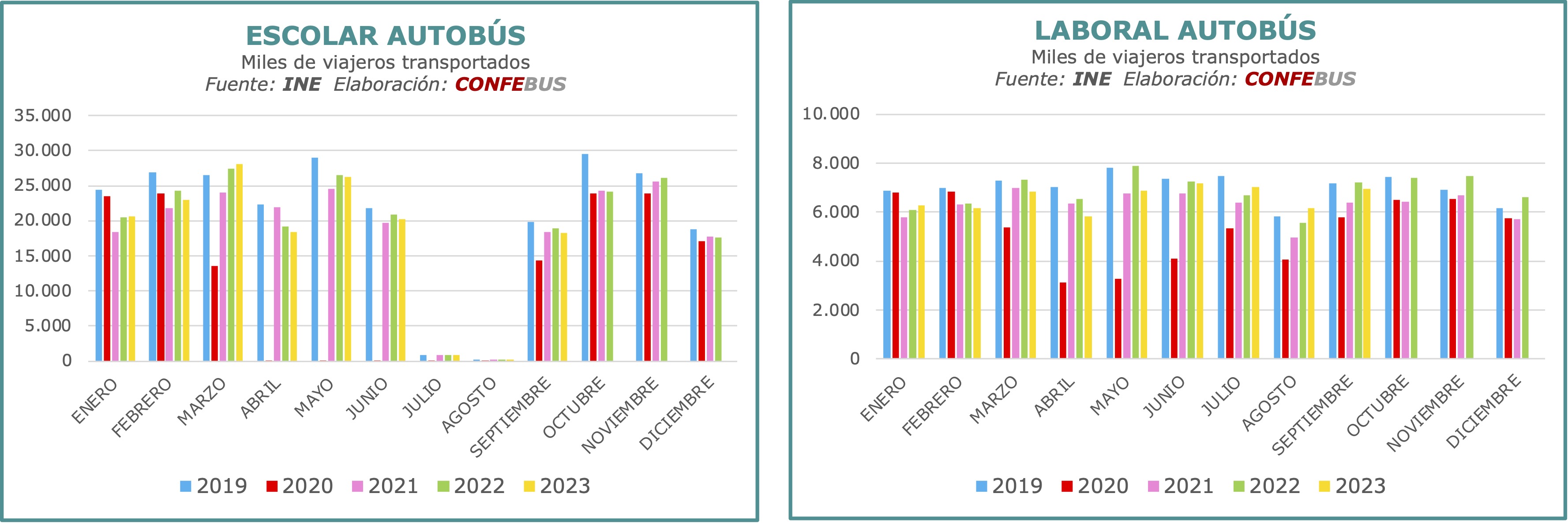 Del mismo modo, el transporte escolar y el transporte laboral siguen por debajo de la demanda de 2019, un -9,41% y un -7,09%, respectivamente.