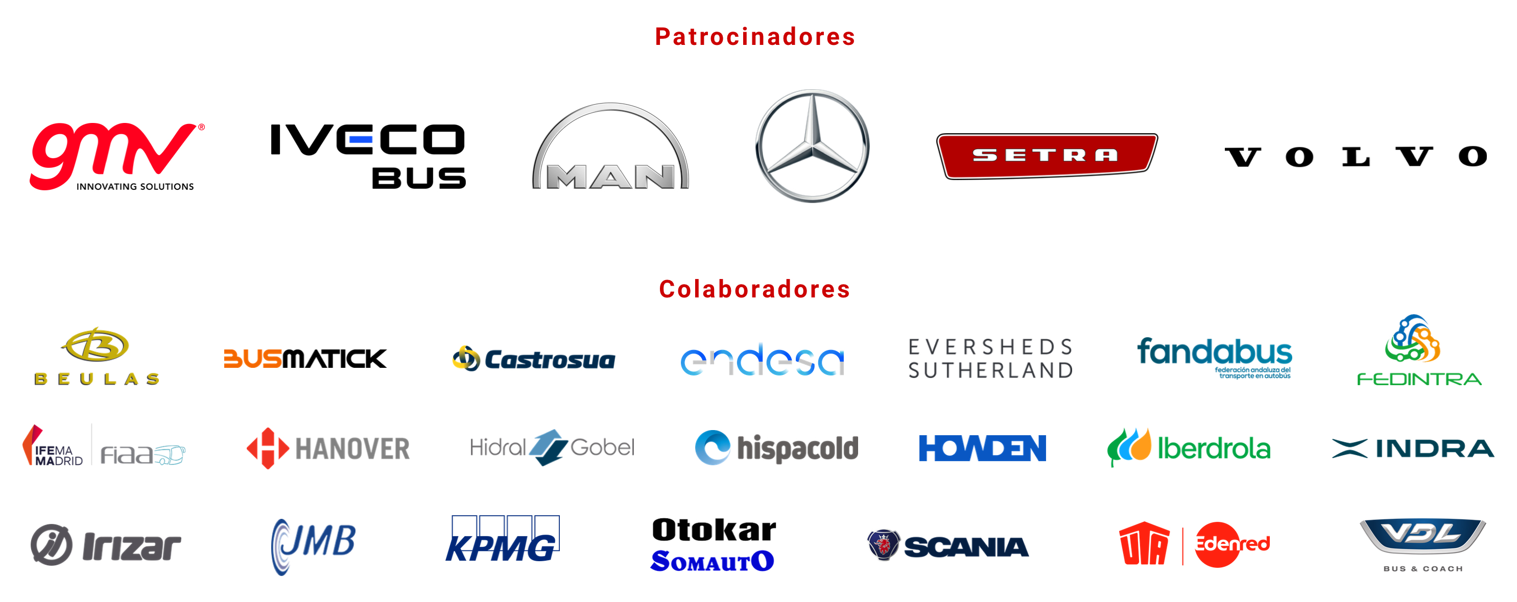 Para la organización de CONFEBUS Summit 2025, en esta edición contamos con el patrocinio de GMV, IVECO BUS, MAN, MERCEDES-BENZ, SETRA y VOLVO, así como con la colaboración de BEULAS, BUSMATICK, GRUPO CASTROSUA, ENDESA, EVERSHEDS SUTHERLAND, FANDABUS, FEDINTRA, FIAA-IFEMA, HANOVER, HIDRAL GOBEL, HISPACOLD, HOWDEN, IBERDROLA, INDRA, IRIZAR, JMB, KPMG, OTOKAR-SOMAUTO, SCANIA, UTA EDENRED y VDL.