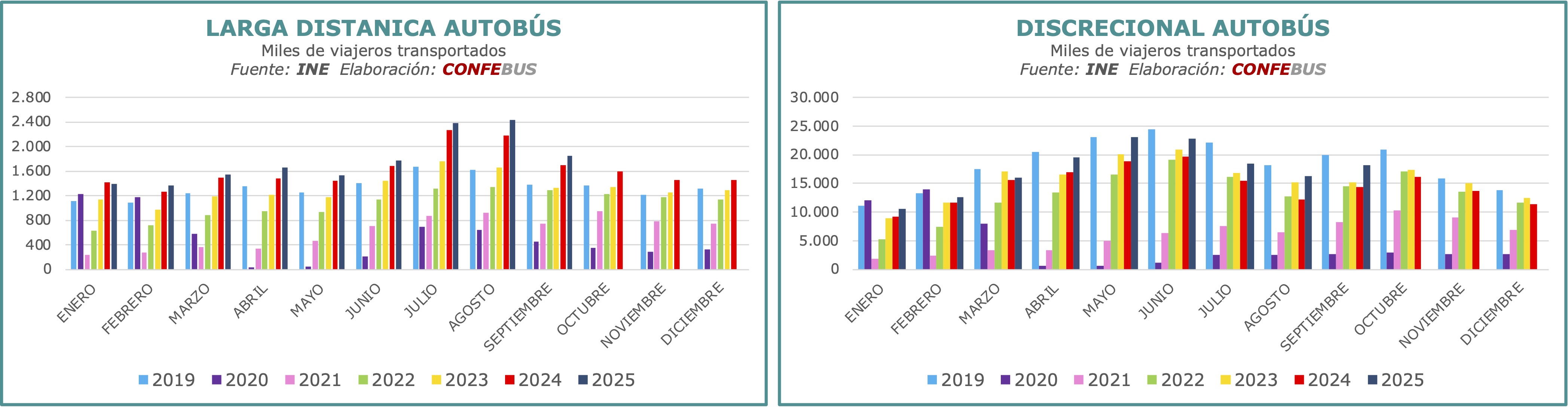 Por su parte, el transporte discrecional creció un 6,9% respecto al mismo mes del año 2024, con más de 18,1 millones de viajeros.