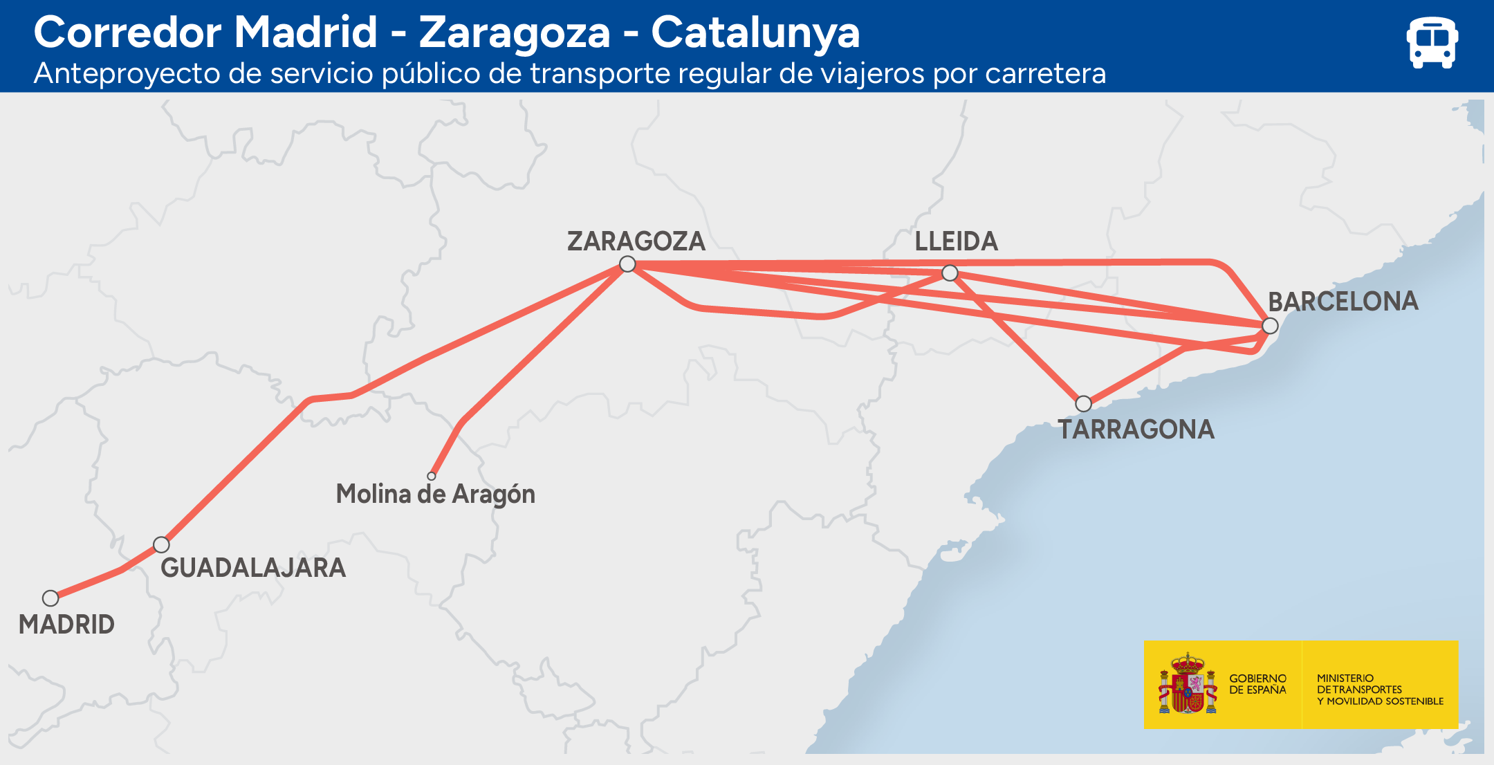 Se incluirá el servicio Madrid – Guadalajara – Zaragoza – Barcelona; el Madrid – Zaragoza – municipios de Lleida y Tarragona; así como una ruta entre Zaragoza y la comarca del Señorío de Molina-Alto Tajo. Estos tráficos son actualmente atendidos por las concesiones VAC-099 y VAC-263.