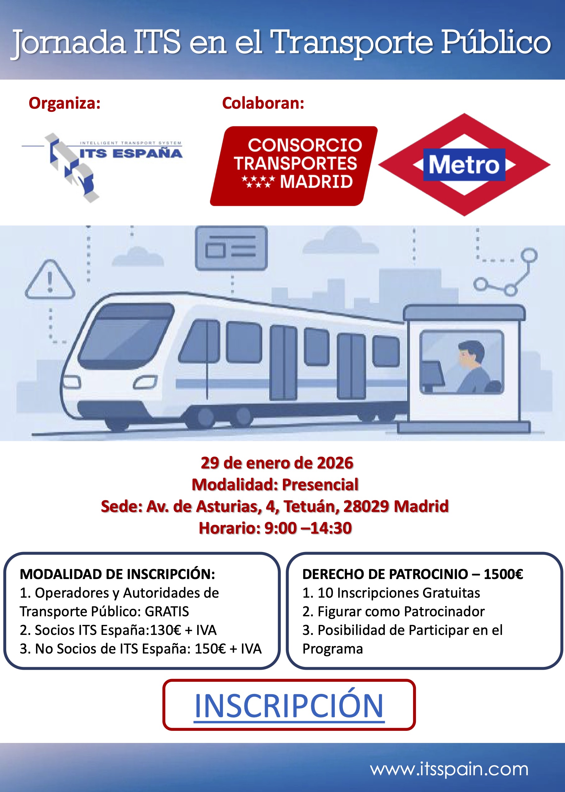 El próximo 29 de enero, Madrid acogerá la Jornada ITS en el Transporte Público, un encuentro organizado por ITS España con la colaboración del Consorcio Regional de Transportes de Madrid y Metro de Madrid, que reunirá a los principales responsables institucionales y expertos del sector para analizar los avances en digitalización,…
